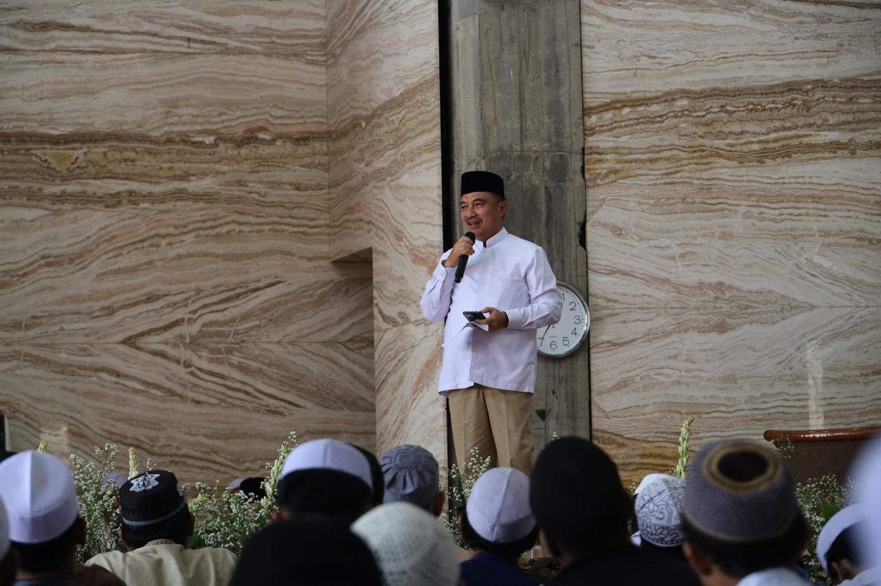 Kota Bekasi, – Mediarjn.com – Rasulullah merupakan potret pemimpin yang sukses memberi teladan keharmonisan tanpa menyoal perbedaan. Menyadari kemajemukan latar belakang religius masyarakat yang ada saat itu, putra Abdullah ini tidak menjadikan perbedaan agama sebagai penghambat dalam membangun kerukunan. Hal itu dikatakan Wakil Wali Kota Bekasi Abdul Harris Bobihoe saat menghadiri kegiatan Maulid Nabi di Masjid Jami Annur, Bekasi Utara.