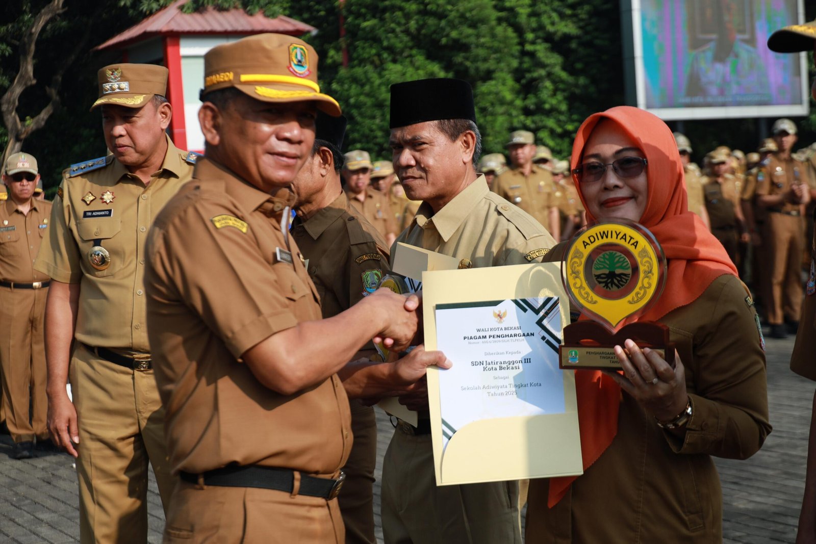 Kota Bekasi, – Mediarjn.com – Pemerintah Kota Bekasi melalui Dinas Lingkungan Hidup memberikan Penghargaan Sekolah Adiwiyata Tingkat Kota Bekasi Tahun 2025. Penghargaan diserahkan langsung oleh Wali Kota Bekasi, Tri Adhianto Tjahyono, pada saat apel di Plaza Kantor Wali Kota Bekasi, Senin (22/09).