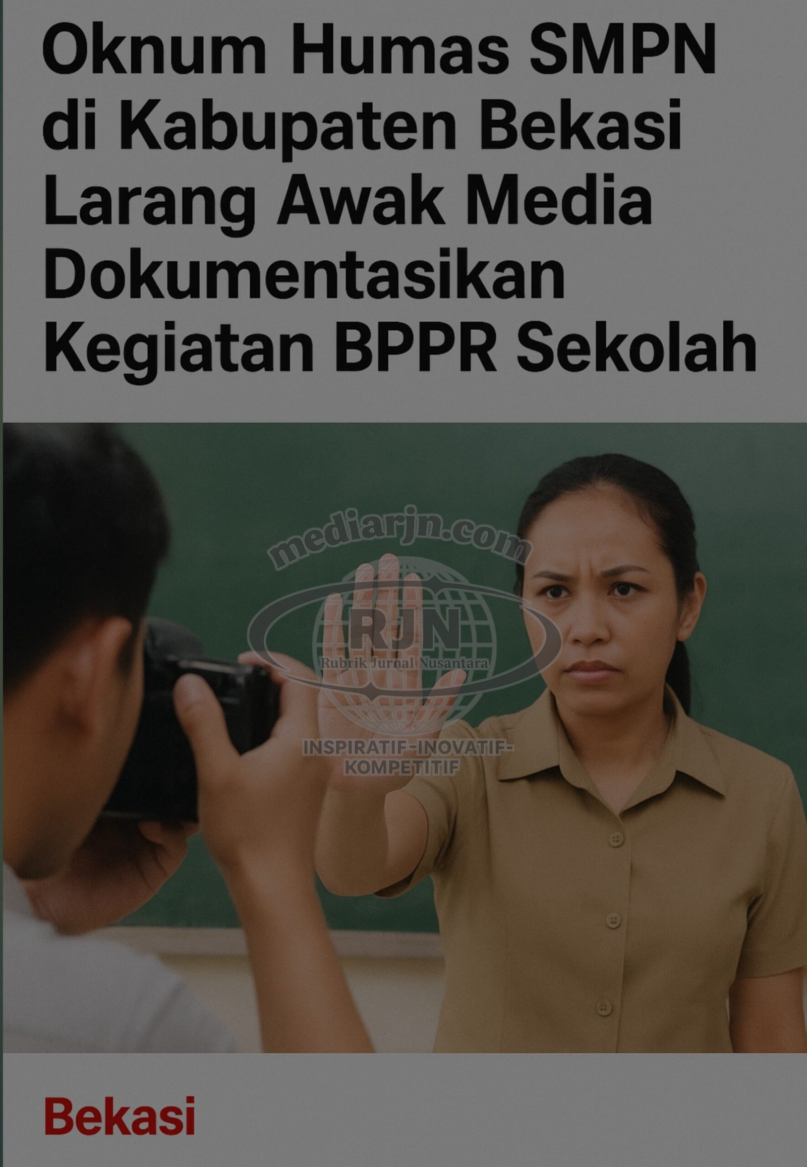 Bekasi, – Mediarjn.com – Salah satu sekolah negeri di Kabupaten Bekasi. Seorang oknum Humas di SMP Negeri (SMPN) diduga melarang awak media mendokumentasikan kegiatan Bantuan Pemerintah Program Revitalisasi (BPPR) dengan alasan peraturan internal sekolah, Senin, (10/11/2025).
