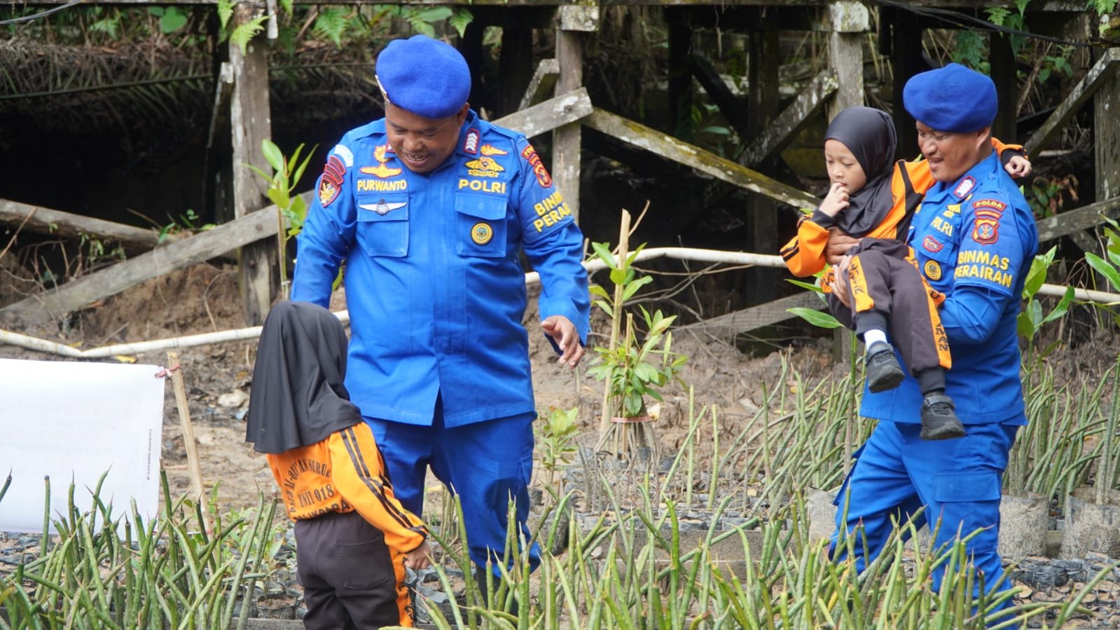 Tak hanya mengenal tugas kepolisian, personel Polairud juga memberikan materi pengenalan ekosistem mangrove sebagai bagian dari edukasi lingkungan sejak usia dini.