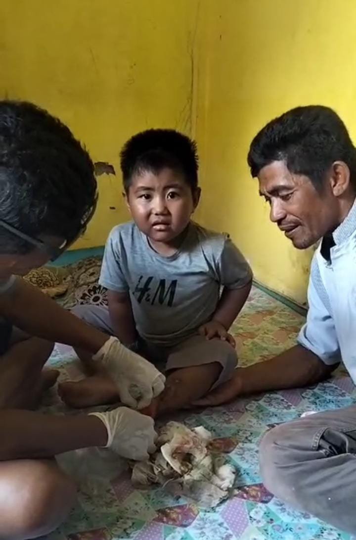 Minggu, 16 November 2025, – Mediarjn.com – Ikatan Peduli Bima Dompu kembali melakukan kegiatan penyerahan bantuan kepada Muhammad Fajar, bocah umur 5 tahun yang mengalami infeksi pada kaki sebelah kiri dan terancam diamputasi.