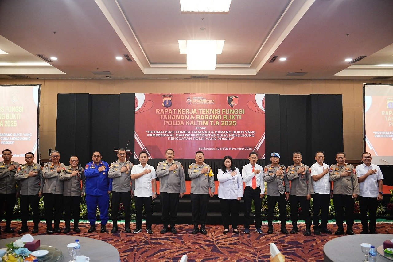 Balikpapan, – Mediarjn.com – Kepolisian Daerah Kalimantan Timur melaksanakan Rapat Kerja Teknis (Rakernis) Fungsi Tahti Tahun 2025 pada Rabu, 19 November 2025, bertempat di Ballroom Hotel Platinum Balikpapan. Kegiatan ini digelar sebagai upaya optimalisasi pelaksanaan tugas dan fungsi perawatan tahanan, pemasyarakatan, serta pelayanan administrasi Tahti di lingkungan Polda Kaltim dan jajaran.