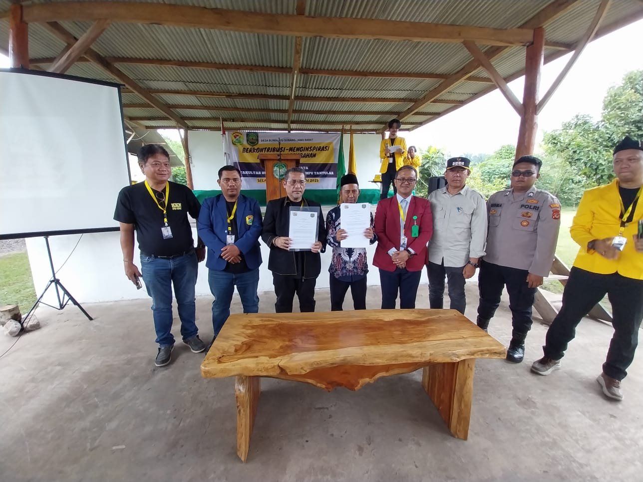 Penandatanganan dilakukan bersama Kepala Desa Bunihayu dan berbagai pemangku kepentingan desa, memperkuat kolaborasi antara dunia akademik dan pemerintahan lokal.