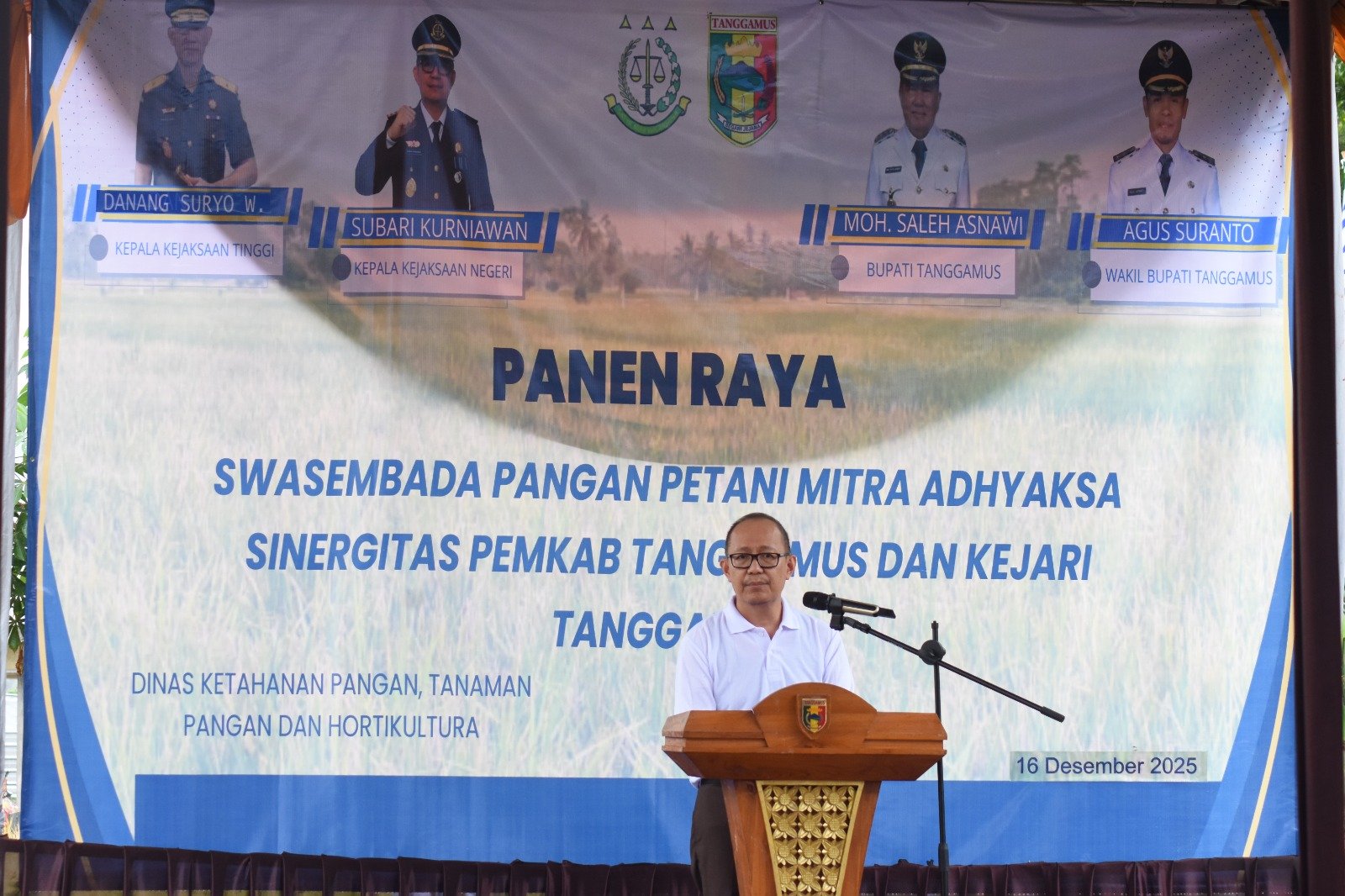 Sementara itu, Wakil Bupati Tanggamus Agus Suranto menyampaikan bahwa panen raya tersebut merupakan hasil nyata sinergi antara petani, penyuluh pertanian, pemerintah daerah, dan Kejaksaan. Pemkab Tanggamus, lanjutnya, berkomitmen memperkuat ketahanan pangan melalui peningkatan produktivitas, penyediaan sarana dan prasarana pertanian, penguatan kelembagaan kelompok tani, serta penerapan teknologi pertanian modern.