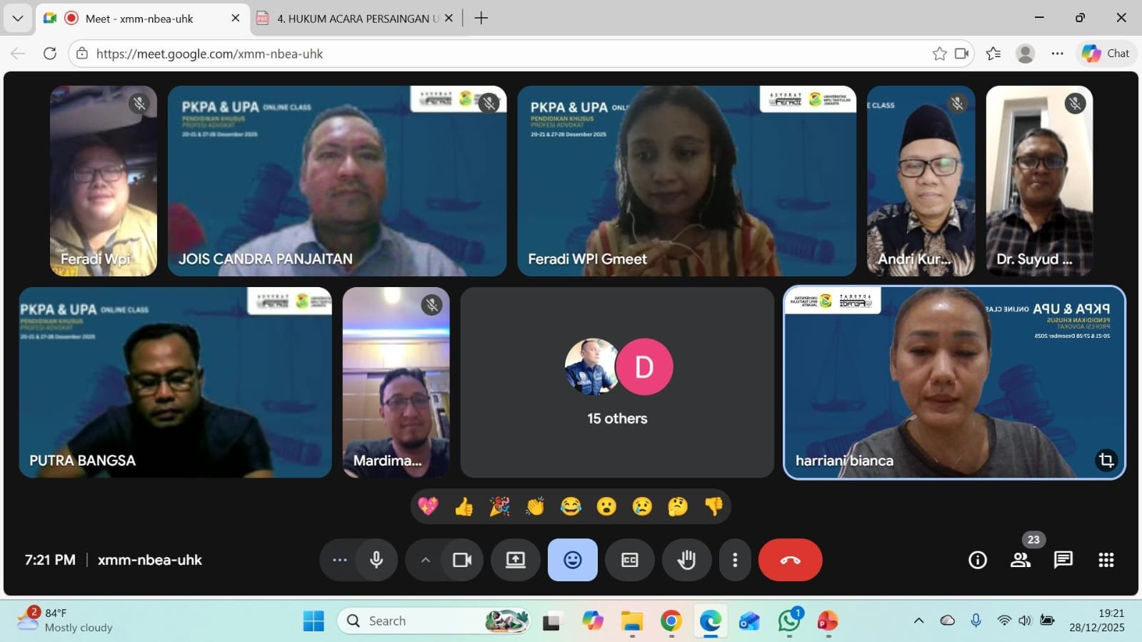 Pelaksanaan PKPA dan UPA Feradi WPI DKI Jakarta bersama Universitas Mpu Tantular melalui Zoom Meeting