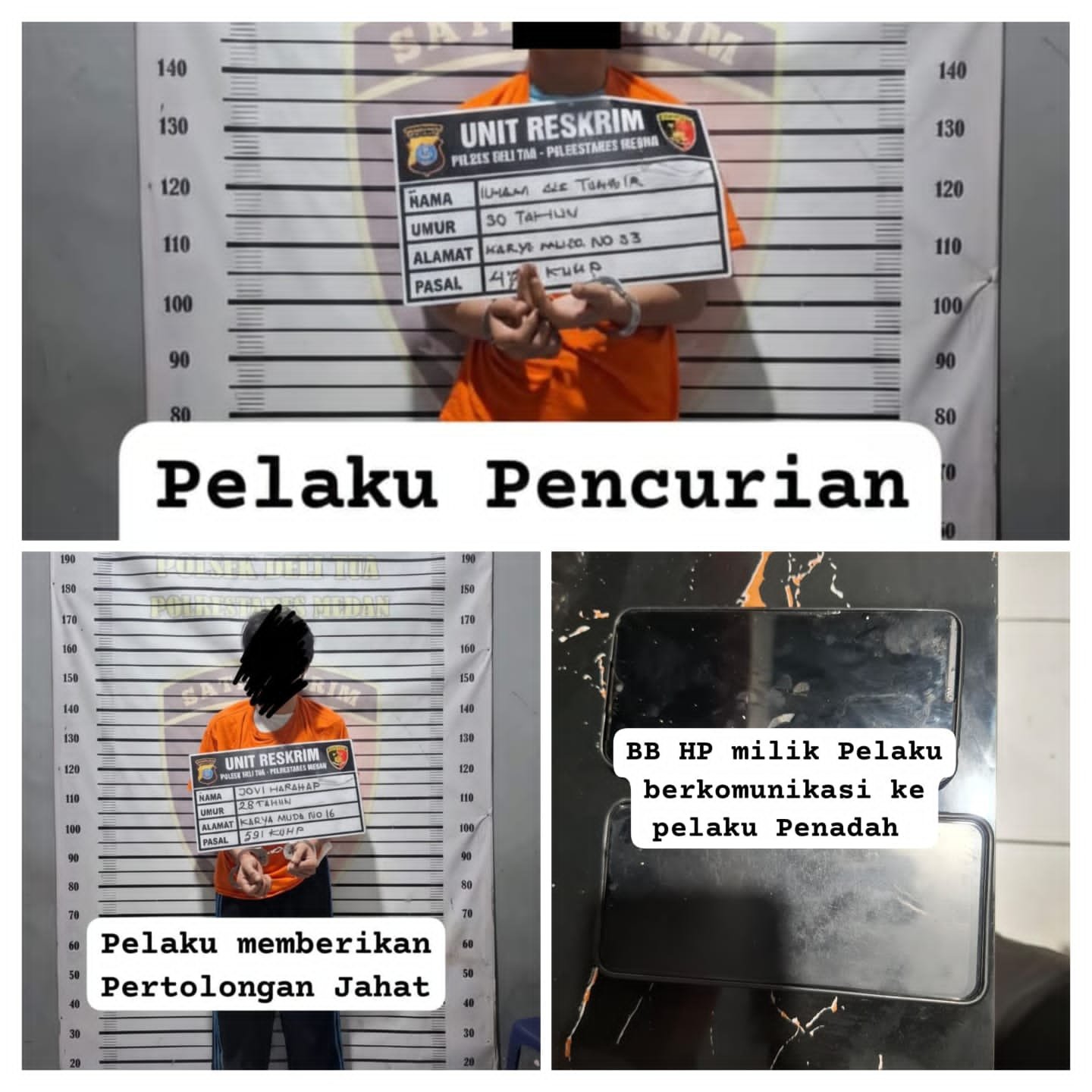Kedua tersangka masing-masing berinisial IP alias T (30) dan JH (28), warga Jalan Karya Jaya, Gang Karya Muda, Kelurahan Pangkalan Mansyur, Kecamatan Medan Johor. Berdasarkan hasil penyelidikan, IP berperan sebagai eksekutor pencurian, sementara JH berperan membantu menjual hasil kejahatan kepada pihak lain.