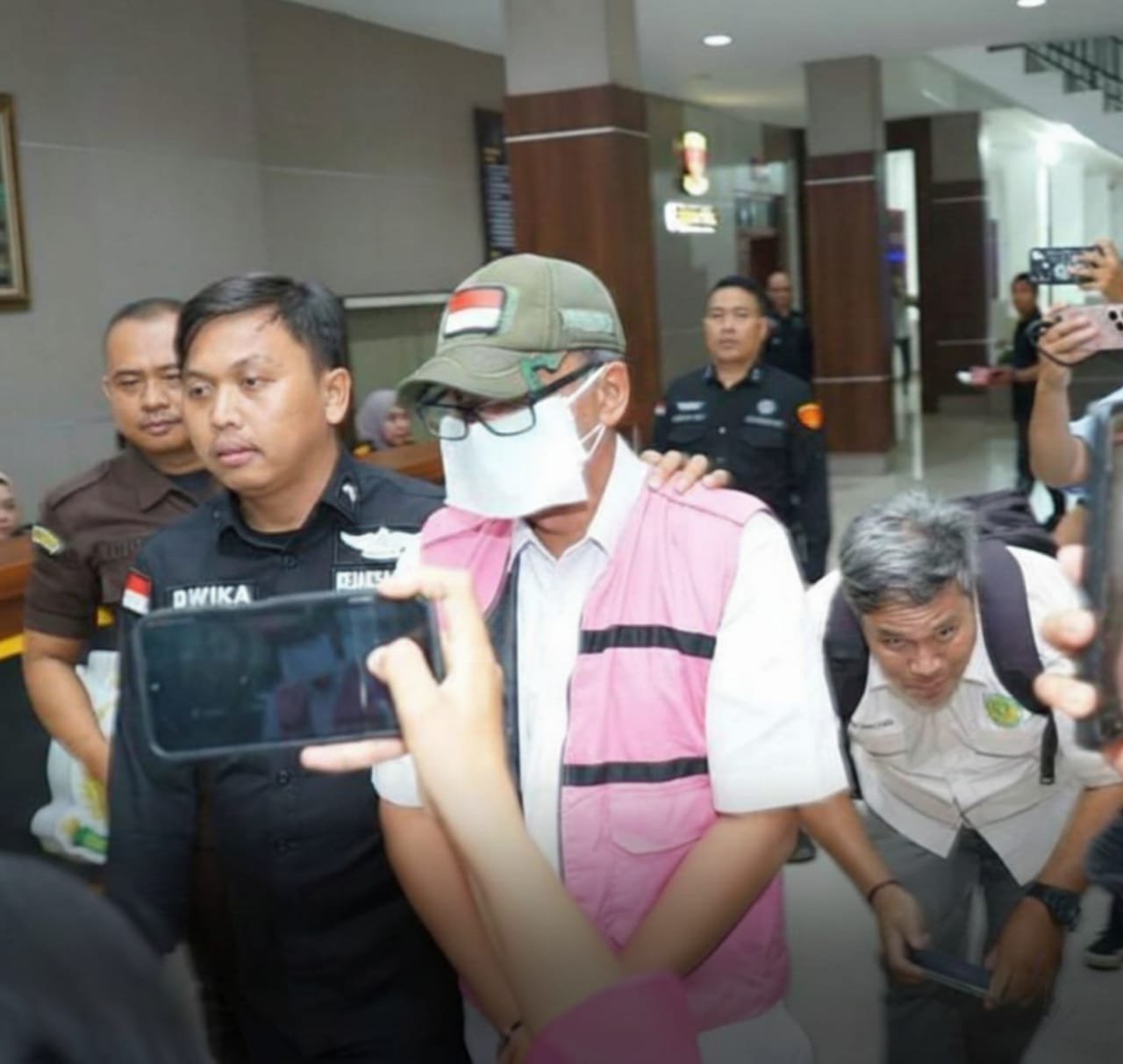 Pantauan di Kejati Sumut, Enda Simakasura Ketaren tampak tertunduk saat keluar dari ruang penyidik setelah dikenakan rompi oranye tahanan tindak pidana korupsi sebelum digiring ke rumah tahanan.