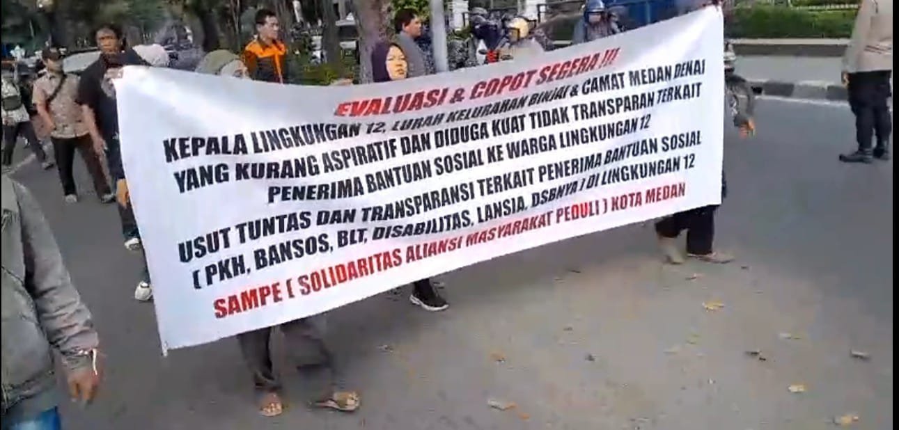 Aksi dipimpin oleh Johan Merdeka selaku Koordinator Aliansi, didampingi Ajian Pasaribu sebagai Koordinator Warga Lingkungan XII dan Isdawati sebagai Koordinator Lapangan. Dalam orasinya, massa menyampaikan berbagai tuntutan yang mencerminkan keresahan warga terhadap tata kelola bansos di wilayah mereka.