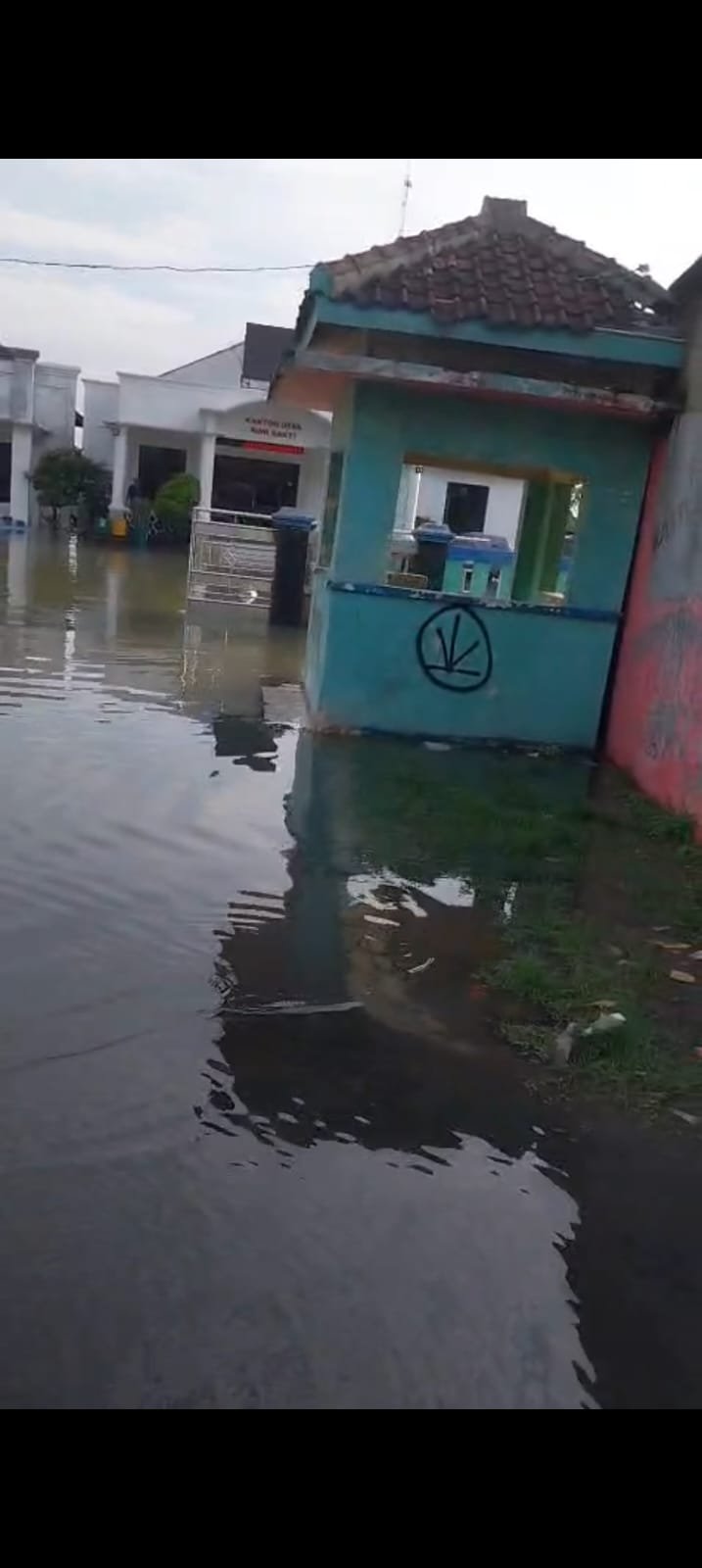 Banjir tidak hanya melanda permukiman warga. Kantor Desa Buni Bakti juga terpantau tergenang air hingga semata kaki orang dewasa, menghambat pelayanan administrasi pemerintahan desa kepada masyarakat.