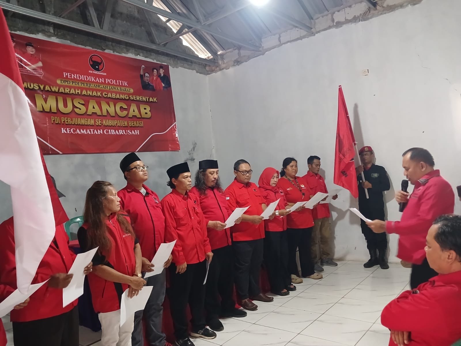 Usup Supriatna, S.IP, Sekretaris DPC PDI Perjuangan Kabupaten Bekasi, Pimpin Pengucapan Sumpah Janji Pengurus PAC Cibarusah, Sabtu (31/1/2026)