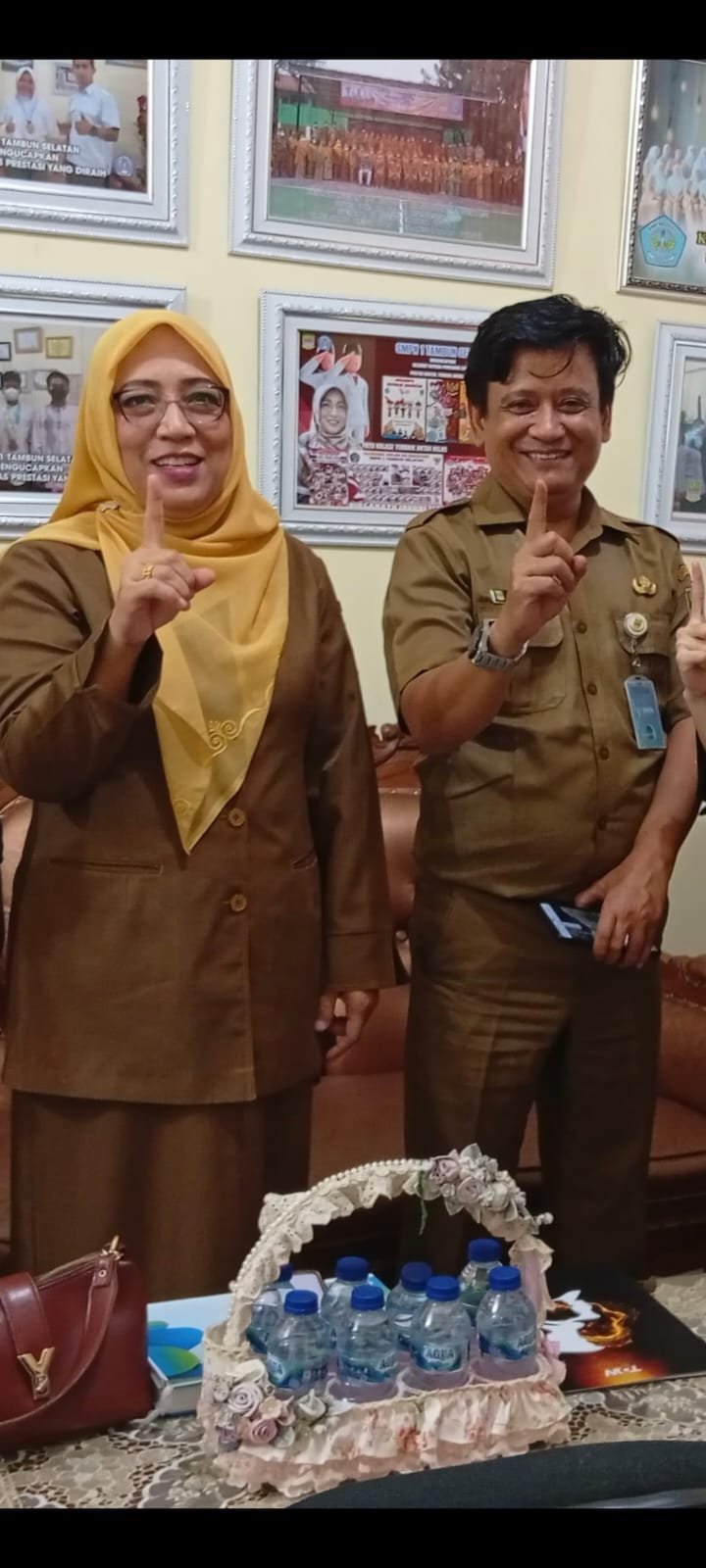 Kepala Sekolah SMPN 1 Tambun Selatan Dr. Hj. Annisa, S.Pd., M.Pd bersama Wakasek Giatna Humas sekolah dalam kegiatan komunikasi publik dan sosialisasi program sekolah.